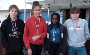 3èmes au Challenge Vitesse : Justin BRU, Lucas BRUGÈRE, Laurie DARMAU et Aude-Axelle OKOBÉ