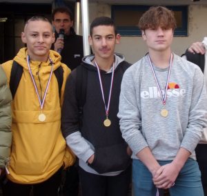 C’est sous des trombes d’eau que s’est déroulé le Championnat Départemental d’Athlétisme Hivernal et le Challenge Athlétisme mercredi 6 novembre à Agen. Malgré le déchaînement des éléments, nos élèves ont su garder leur sourire et leur bonne humeur et ont été très performants puisqu’ils font un podium dans tous les challenges dans lesquels ils se sont engagés :